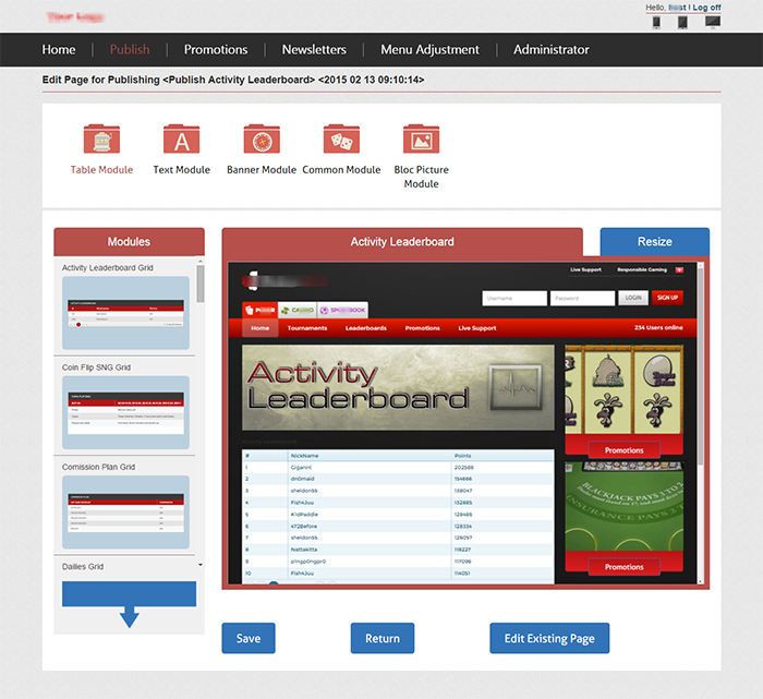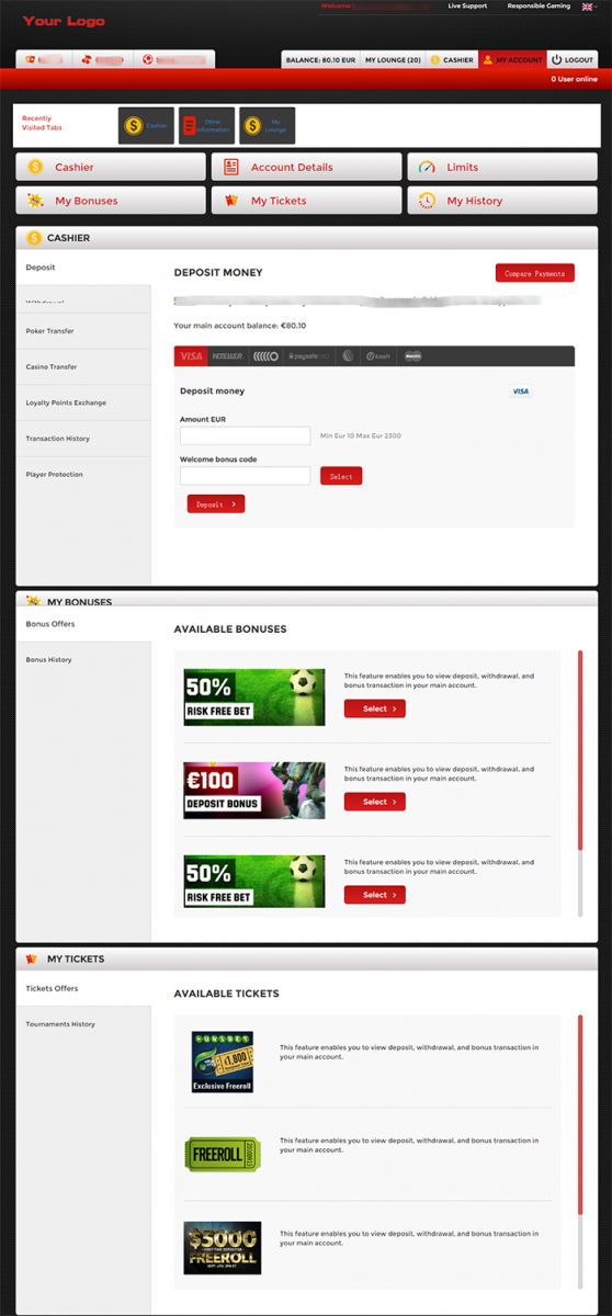 客戶是瑞典一家IT公司,項目主要目的為他們的合作伙伴提供在線賭博平臺。項目分為兩部分:一部分是后臺內(nèi)容管理系統(tǒng),內(nèi)容管理系統(tǒng)的作用主要是提供快速搭建站點,不同的合作伙伴可以根據(jù)自己的需要定制不同風(fēng)格的站點,例如合作伙伴可以選擇有授權(quán)的賭博產(chǎn)品,選擇不同風(fēng)格的網(wǎng)站模板,并提供所見即所得的編輯界面,用戶可以快速簡便的編輯網(wǎng)站內(nèi)容;另一部分即平臺本身,主要功能包含在線玩游戲,用戶信息(個人檔案、游戲信息等)記錄,積分充值/兌換。